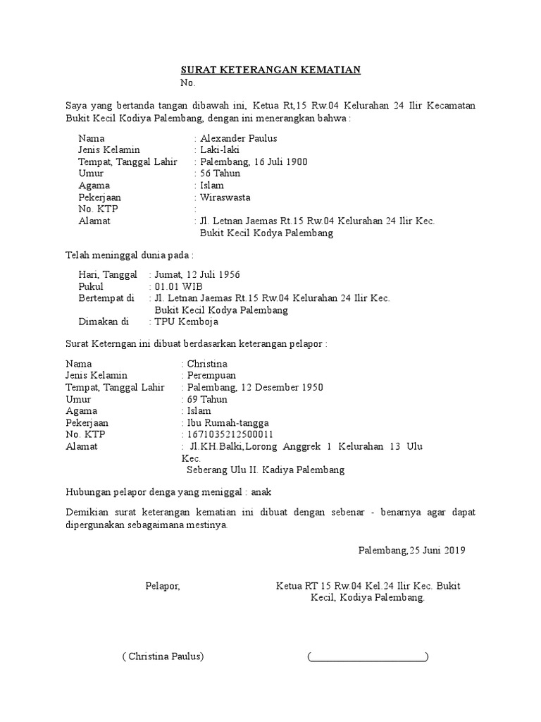 Rs karya medika jakarta jl. Surat keterangan kematian dapat diterbitkan melalui beberapa proses. Berisi contoh surat pengantar rt, barang, dari kepala sekolah. Foto kopi ktp yang meninggal dan pelapor 2. Jenis surat keterangan kematian ini merupakan jenis surat dengan kode: